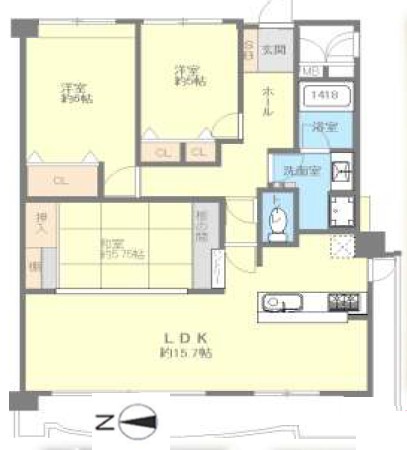 LDK15.7畳 洋室6畳 洋室5畳 和室5.75畳 |