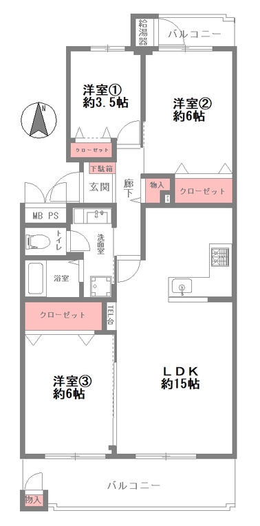 LDK15畳 洋室3.5畳 洋室6畳 洋室6畳 |