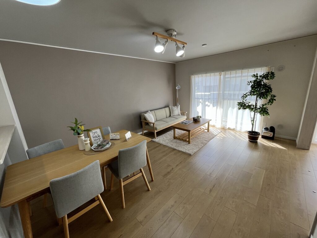 南向きバルコニーから注ぐ陽光が、約15帖の広々としたLDKを明るく包み込みます。